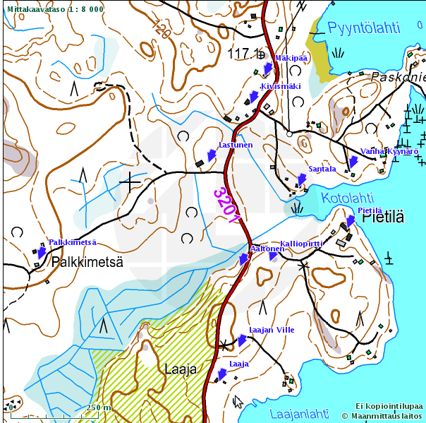 Pirttiniemen talo on viimeinen, joka kuuluu Kyynärön kylään. Seuraava talo Rautajärvelle päin, "Seetin Miinan mökki", oli jo Kantolaa.